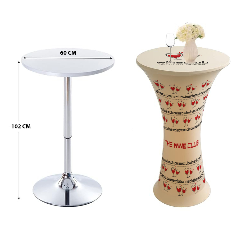 Elevate your event setup with our sleek Bar Poseur Stretch Tablecloth. Designed to fit snugly over poseur tables, this premium-quality cover offers a smooth, professional finish. Its stretch fabric ensures a secure fit with a modern silhouette, ideal for exhibitions, parties, and corporate events. Durable, wrinkle-resistant, and easy to maintain, it adds style and sophistication to any occasion. Transform ordinary tables into elegant focal points with this practical and stylish tablecloth.