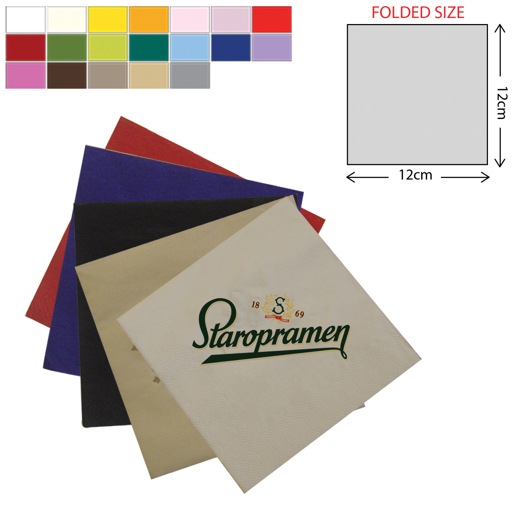 We have a selection of popular printed napkin sizes for you to choose from 25x25cm, 33x33cm and 40x40cm1,200pcs per box, 4 packets of 300 napkins