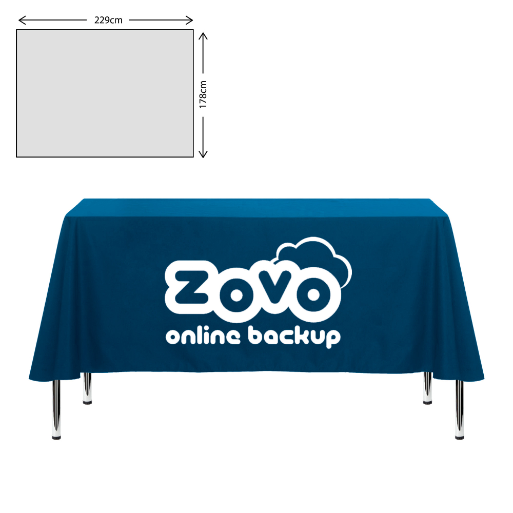Our most popular tablecloth size for a standard 6ft exhibition table is 178x275cm with a full drop of approximately 50cm to all sides.