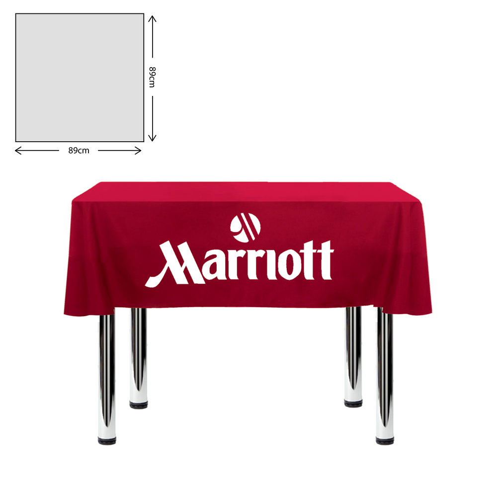 Our most popular tablecloth size for a standard 6ft exhibition table is 178x275cm with a full drop of approximately 50cm to all sides.
