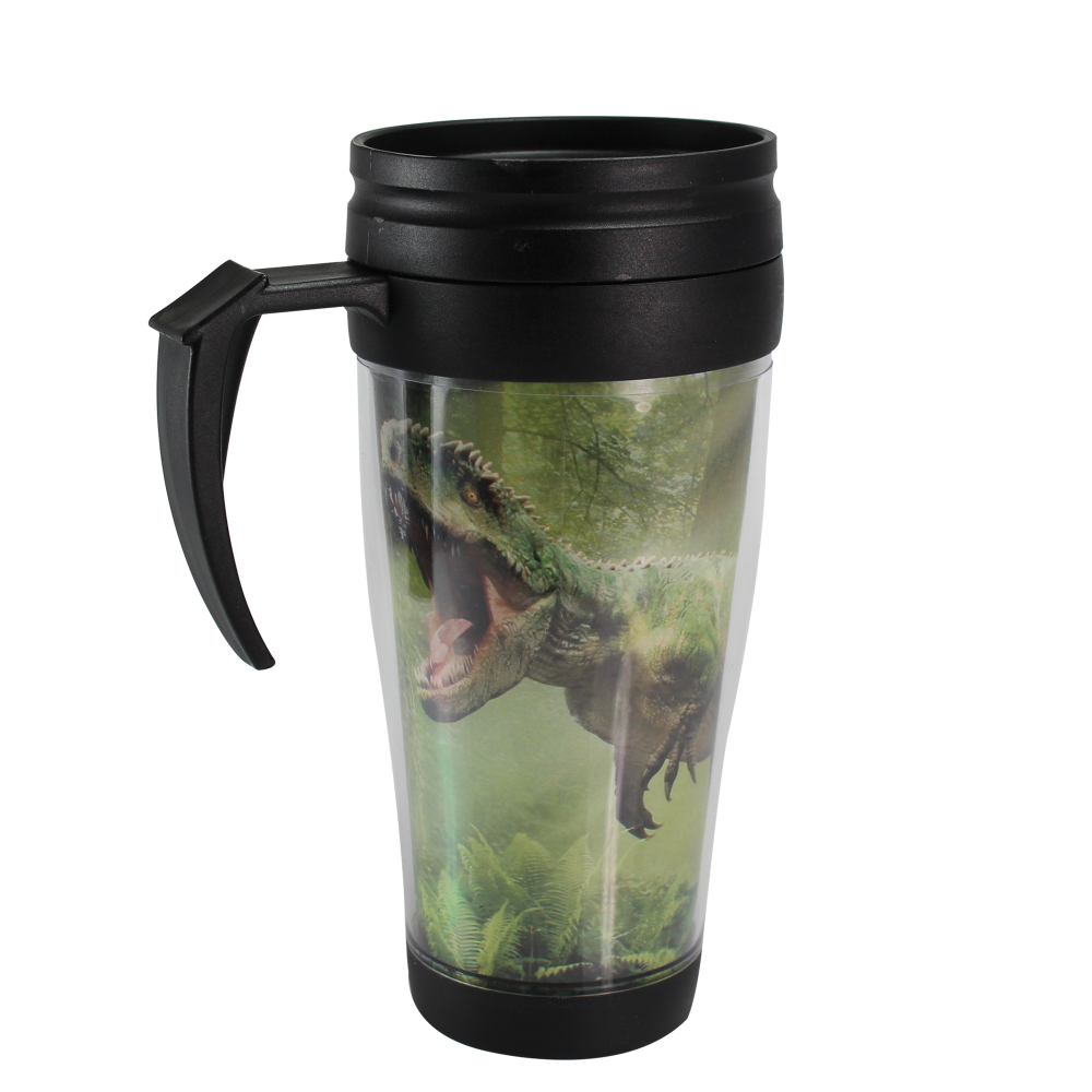 This eco-freindlyThermal Travel Flask will keep your hot drinks warmer and cold drinks cooler for longer. It features a plastic, twin-walled interior with full colour photo printed insert, a sliding open/shut splash proof lid and thumb rest handle.